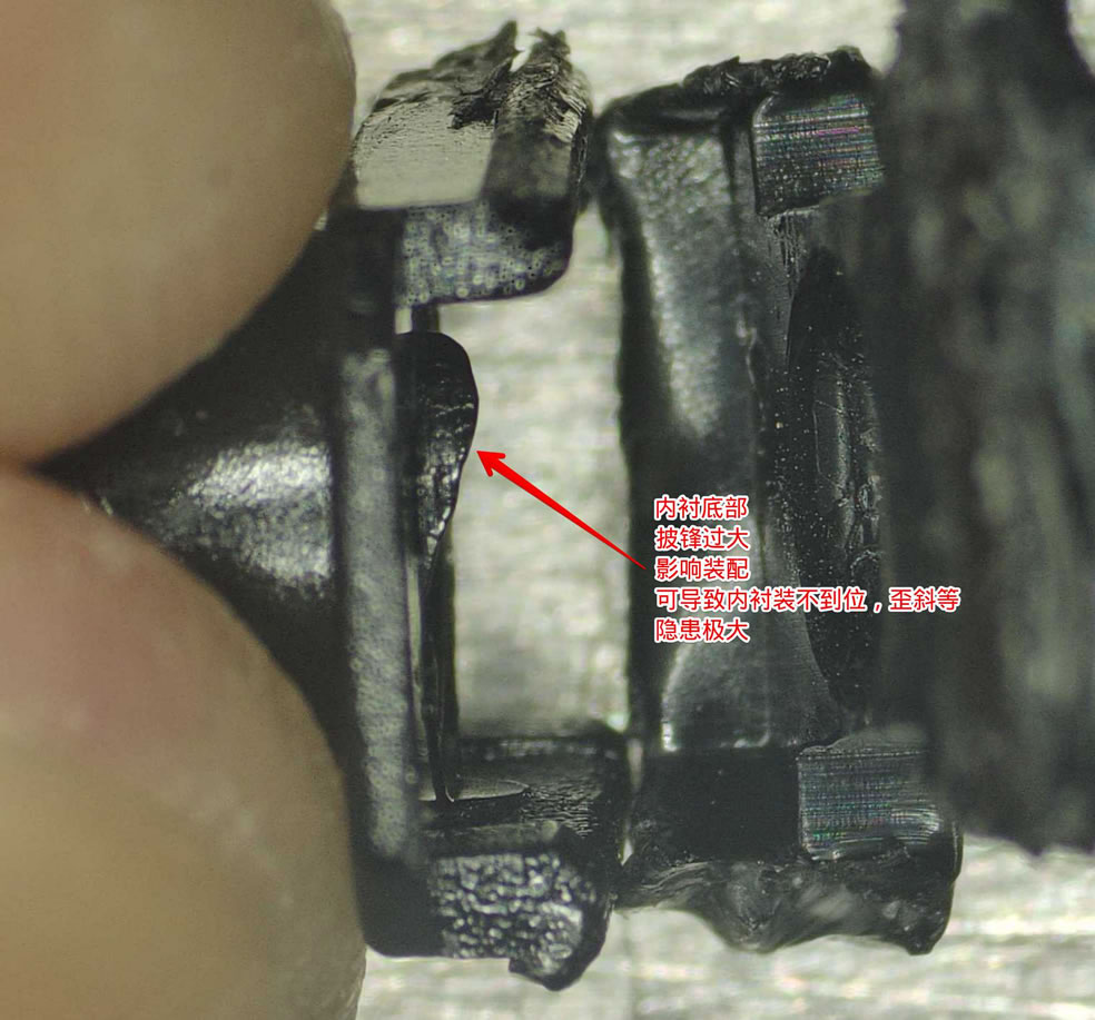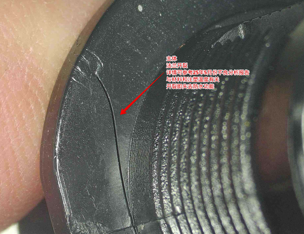 —注意控制注塑温度,温度过高可导致材料催化,曾经因材料催化导致主体法兰开裂,详情可查询事故分析报告;