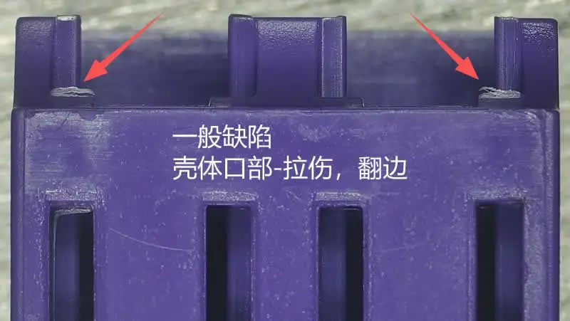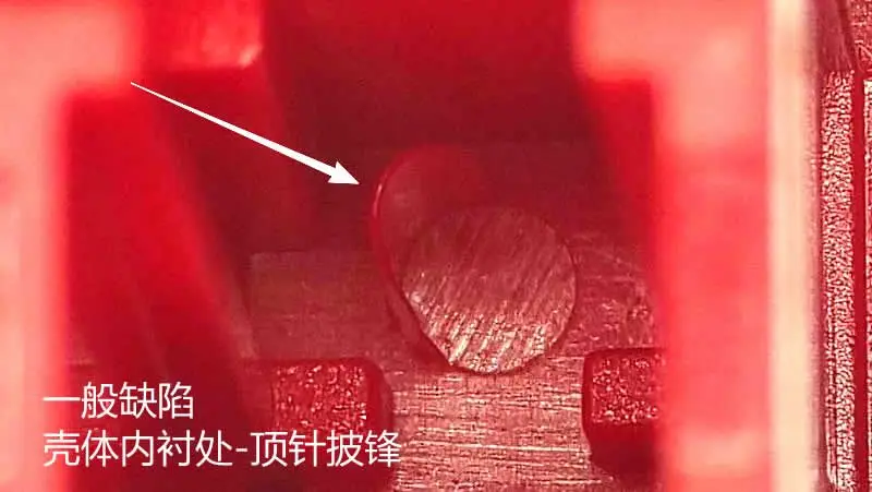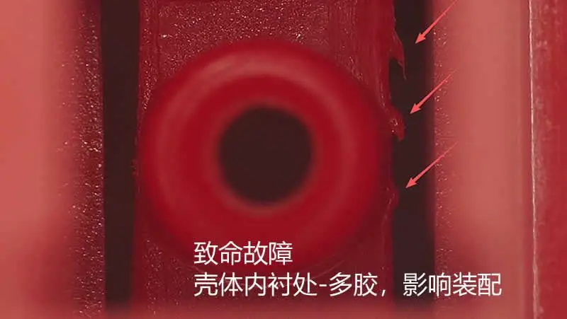 —重点关注:内衬装配位成型情况,内衬口部披锋等致命缺陷;